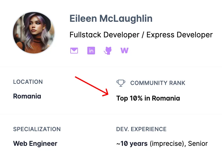 This step is unnecessary on DevScanr where instead of titles you rely onnormalized specializations. We enter our country into Location input and select the “Web Engineer” option in the Specialization combobox. In just a couple of clicks we get a list of 4,000+ specialists from Romania, ordered by specialization matches and custom profile scores.