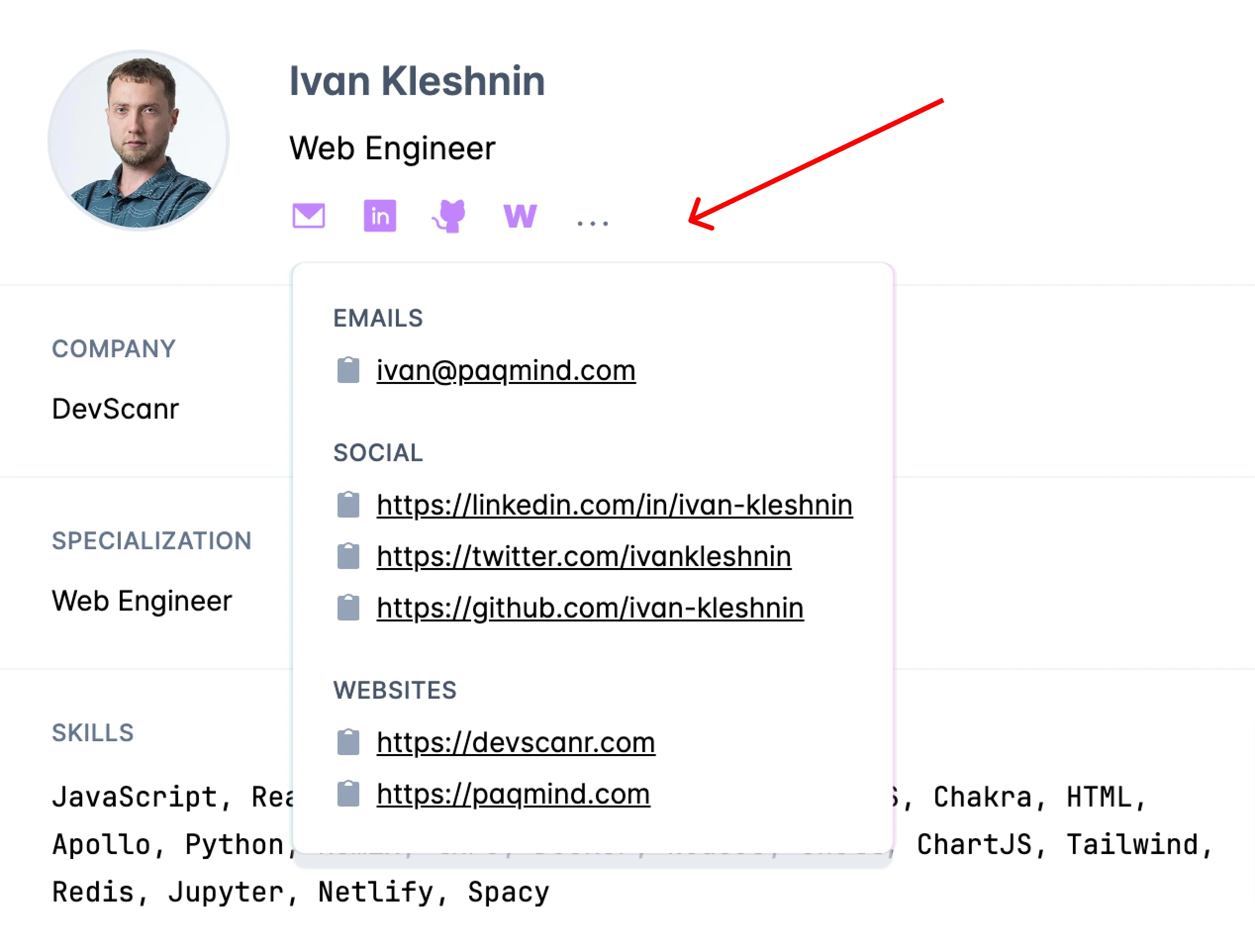 Furthermore, DevScanr provides you with the ability to search for engineers by their contact information. Let’s see how you can incorporate it into your sourcing process.